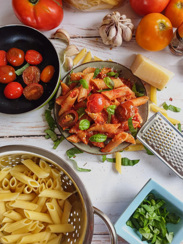 Penne cu rosii si busuioc
